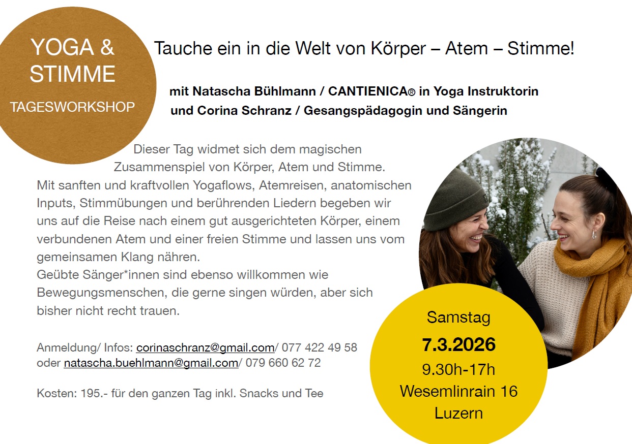 Der neuzeitliche, dynamische und fliessende ChiYoga Stil mische ich mit der von Innen stärkenden und Raum kreierenden CANTIENICA®-Methode. Dadurch wird die Yogapraxis achtsam, nährend und heilend begleitet.