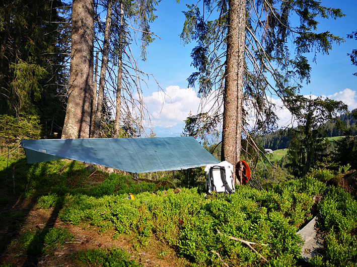 Das Outdoor-Hotel wird liebevoll von Rolf Portmann geleitet, einem erfahrenen Outdoor-Guide, Erlebnispädagogen und guten Freund von mir. Achtsam und liebevoll wird Rolf uns mit einfachen, aber geschickt eingesetzten Utensilien den offenen Raum in der Natur zu einem geschützten Ort zum Kochen, Schlafen oder einfach zum Entspannen einrichten. Zusammen mit ihm darfst du für die kommenden Tage dein Outdoor-«Schlafzimmer» im 1000-Sternehotel gestalten.