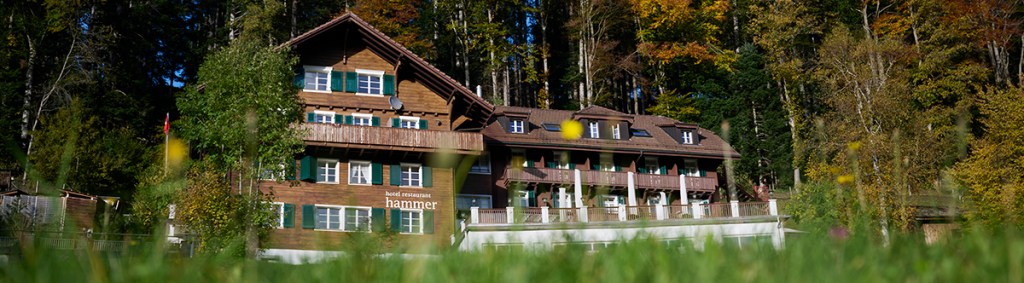 Das Hotel Hammer liegt inmitten geschützter Natur am Fuß des magischen Luzerner Hausbergs Pilatus. Nur wenige Minuten von der Stadt entfernt, liegt diese schmucke Unterkunft, das älteste Hotel des geschichtsträchtigen Eigentals.