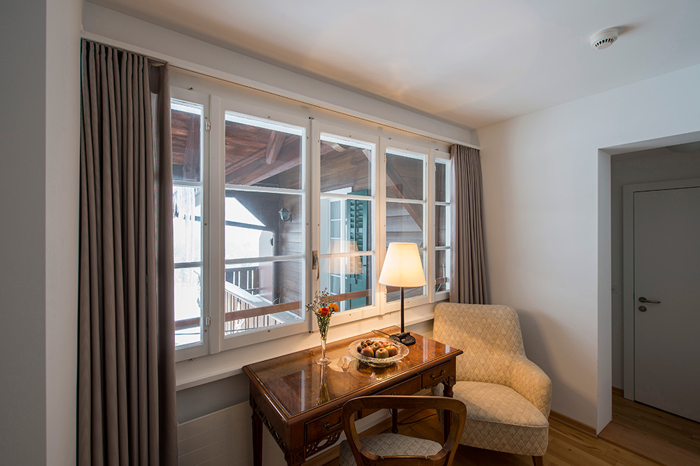 Unsere stilvoll eingerichteten Doppel – und Einzelzimmer mit wundervollem Panoramablick auf den Pilatus oder/und die Eigenthaler Berge laden zum Bleiben ein.